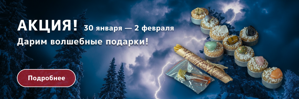В честь такого праздника подарим громничную свечу к каждому заказу с 30 января по 2 февраля 2026 года! А к заказам на сумму от 6500 рублей приложим в подарок ещё и чудесный набор заговорённых громничных свечей «9 озёр. Чистота и Сила Громницы»!