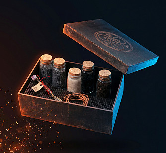 - Двенадцать листов природной пчелиной вощины, окрашенной в чёрный цвет, для изготовления двенадцати свечей высотой 8 см и временем горения до получаса.