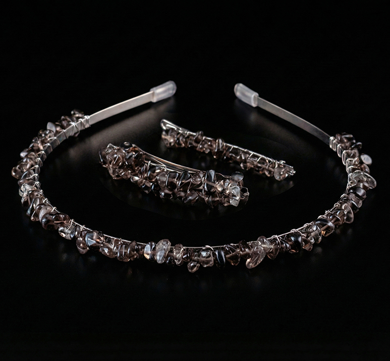 Тонкий металлический безразмерный ободок (ширина до 1 см, подходит на любой размер головы) украшен сверху небольшими и не тяжелыми природными камнями Раухтопаза, камнями Стихии Воздуха. Ободок бережно и надёжно придержит Ваши волосы в аккуратной прическе, не принося неприятных ощущений тяжести и сдавливания. Ободок не замыкается в полный круг, поэтому его нельзя использовать в обрядах вместо очелья. Но сила природных камней Стихии Воздуха в этой прекрасной вещи сполна проявит свои магические свойства в повседневной жизни.